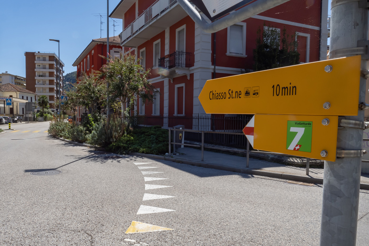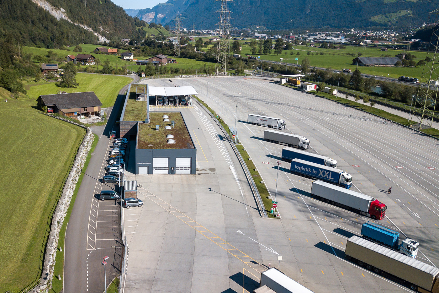 Kurz vor Erstfeld stösst dem Trans Swiss Trail die Via Gottardo dazu. Diese ist Filipponi bereits zuvor in Basel gestartet. Via Baselland, Solothurn, Aargau und Luzern wanderte er an den Vierwaldstättersee und weiter bis Altdorf und Erstfeld. Hier im Kanton Uri besuchte er das SVZ, das Schwerverkehrszentrum, das einen Grossteil der rund einer Million Lastwagen, die die Alpen jährlich queren, bewältigt.