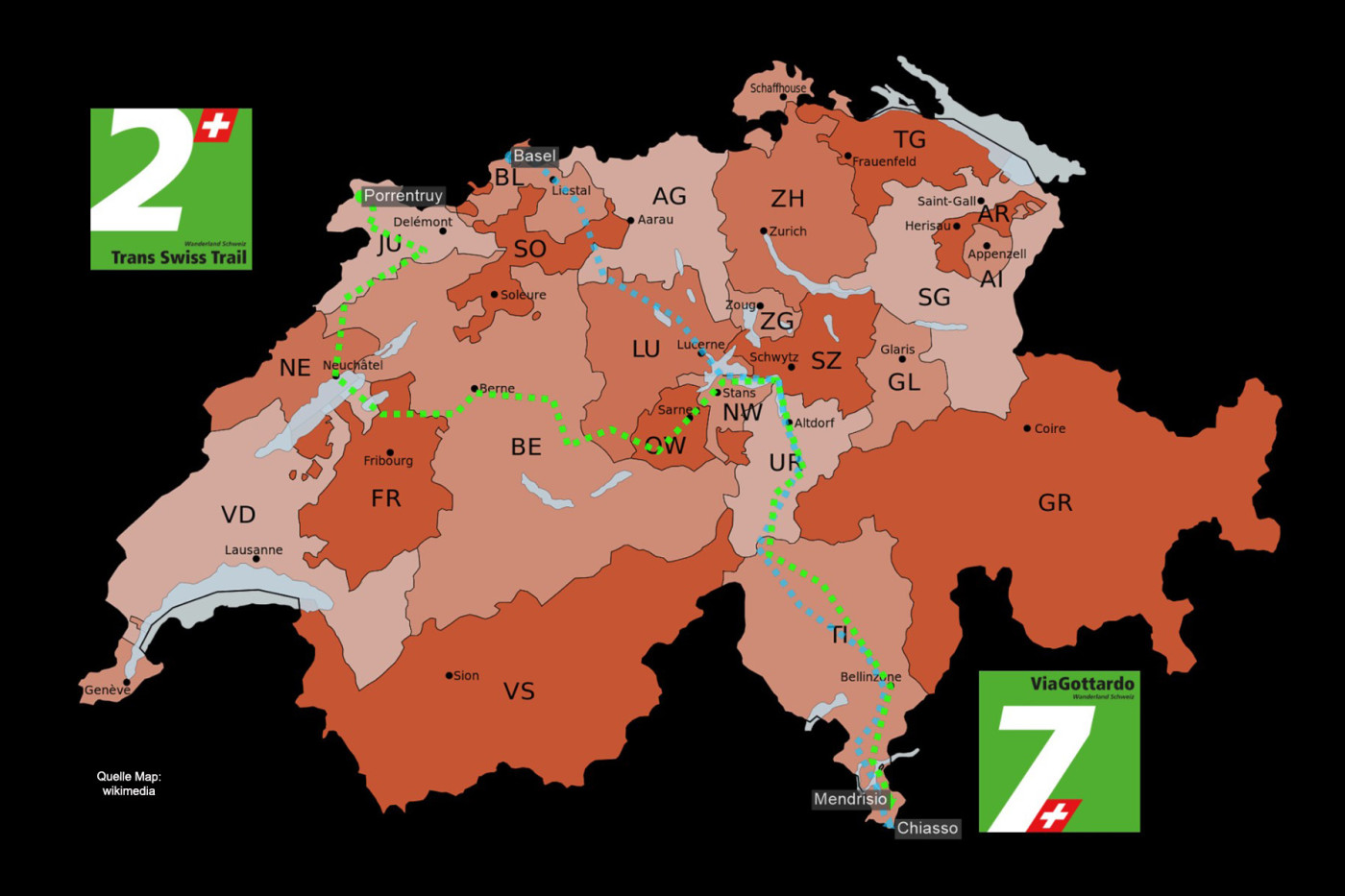 Der Trans Swiss Trail von Porrentruy nach Mendrisio im Tessin ist eines der letzten Abenteuer zu Fuss durch die vielfältigen Landschaften der Schweiz. Vom Jura führt der Fernwanderweg durchs Seeland in die Region Fribourg und Bern. Via Emmental und Entlebuch geht’s zum Sarner- und Vierwaldstättersee.
